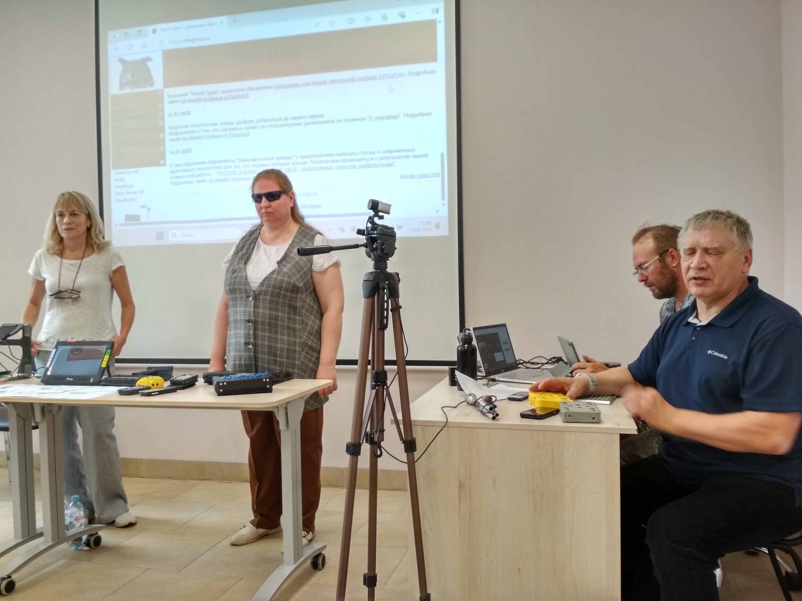 Сегодня на семинаре: «Роль тифлоинформационных технологий в жизни незрячих людей» Олег Анатольевич познакомил присутствующих с некоторыми программами по обучению тифлоинформационным технологиям слепых и слабовидящих пользователей тифлотехники на базе АНО "Гармония". Ведущий специалист по адаптивным технологиям компании "Элита Групп" г. Москва - Васильева Светлана и Антошина Майя - менеджер по работе с клиентами, компания «Элита групп» представили участникам семинара новые разработки в области современных адаптивных технологий для образования и реабилитации инвалидов по зрению.